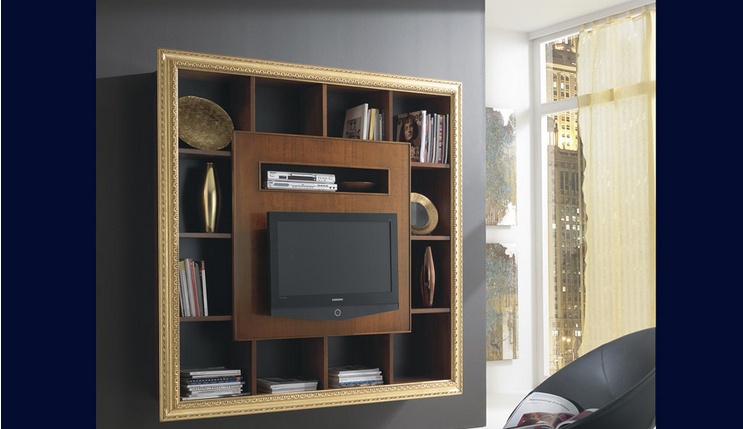 The rack, from the Italian manufacturer at the stilema stand. The frame is made from solid wood. Finish - lacquer from assrtiment company. The model is decorated with carved decoration. The rack is made with a special place for TV.