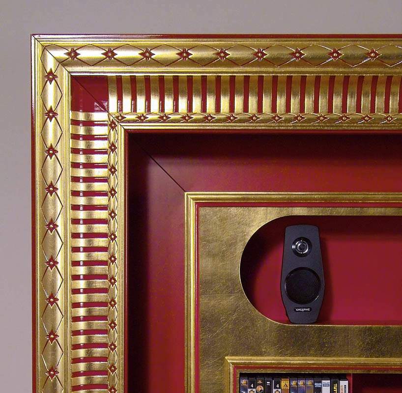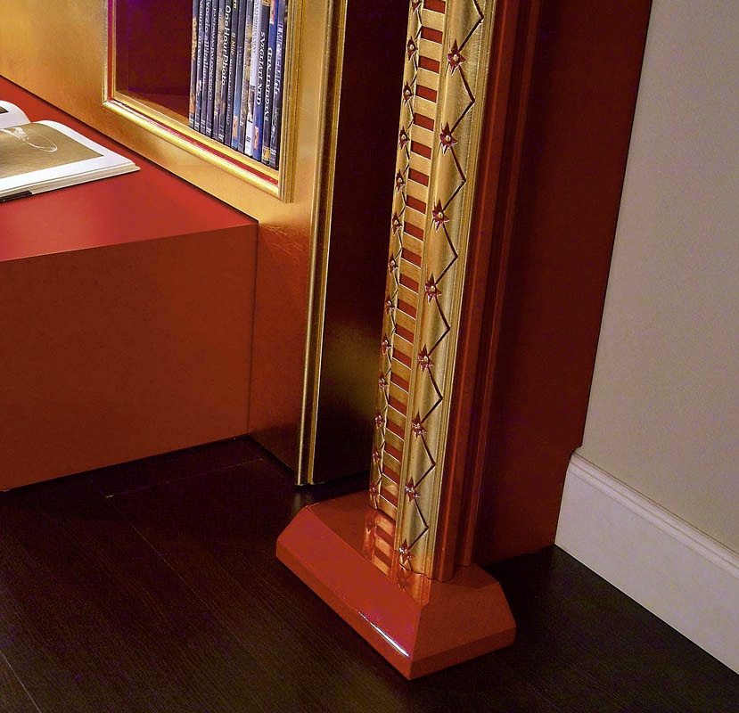 The panel under the TV, The Wall, Home Cinema from the Italian manufacturer Vismara. The frame is made from solid wood, the surface is treated with varnish from the range of the campaign. Finish options: gold leaf/silver. There is a place for TV, cabinets with hinged doors for video equipment storage drawers DVD. The model is designed for the living room in art Deco style. Colors: red, black, Golden, silvery.