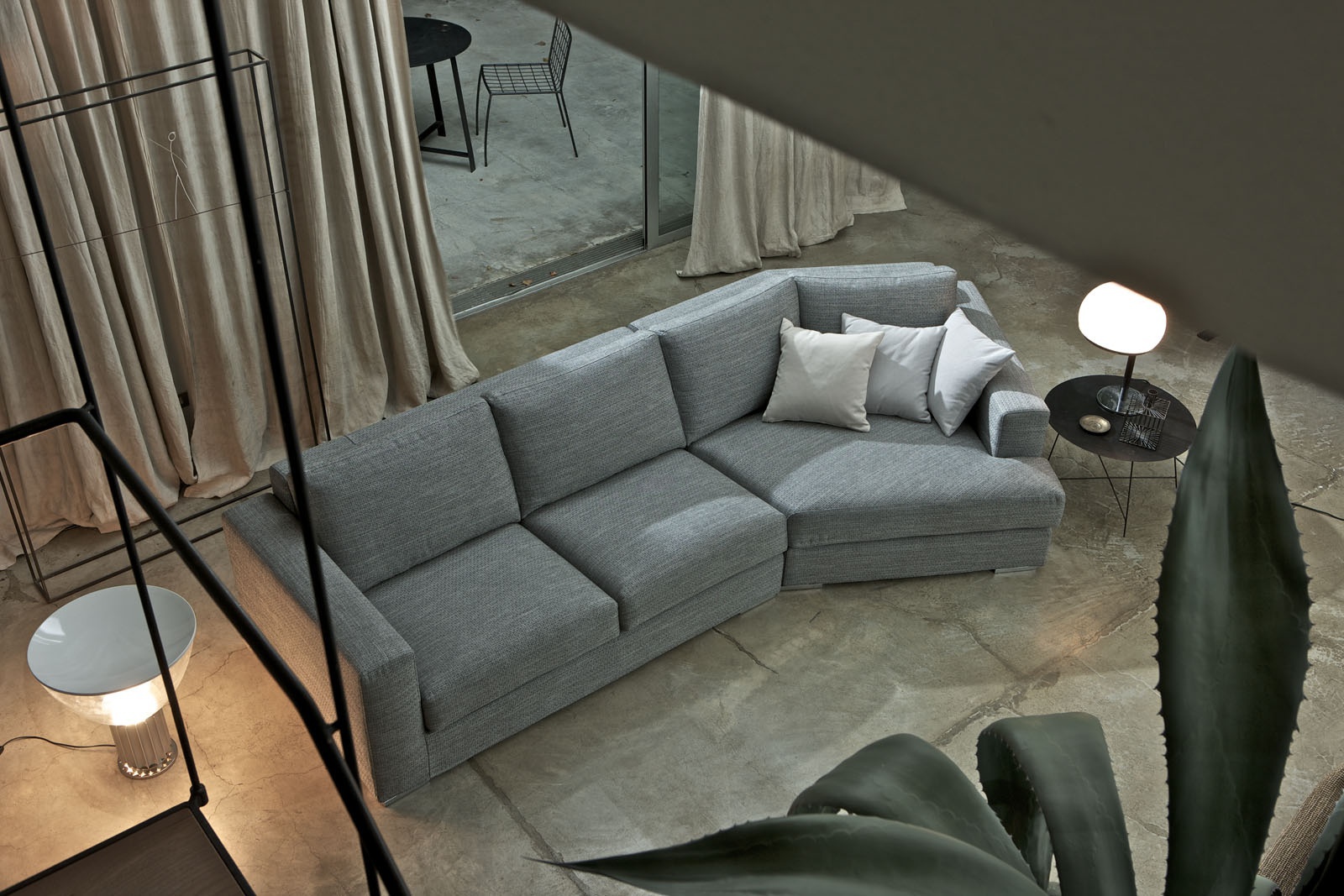 The Broadway sofa from Italian manufacturer Alberta Salotti. The legs are made of metal, filler - foam, upholstery - leather or fabric from the company portfolio. Colours in stock. The perfect choice for a living room in modern style. The model is also available in sectional (modular) version.