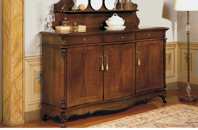 The buffet from the Italian manufacturer at the stilema stand. The model consists of several drawers. The frame is made from solid wood. Accessories textilene augmented tassels. Sideboard decorated with carved decoration. The model is made in classic style.
