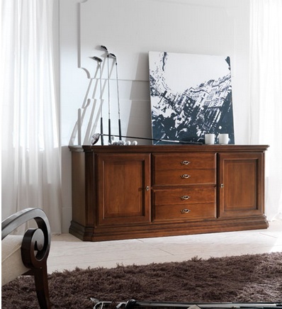 The buffet from the Italian manufacturer at the stilema stand. The model is made of wood. Finish made in the color of natural wood. The model is made in classic style.