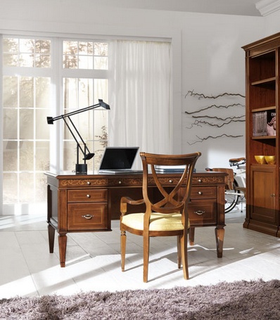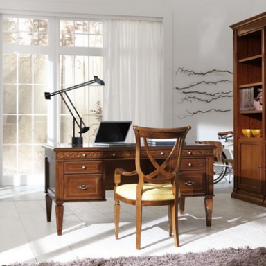 Desk from the Italian manufacturer at the stilema stand. The frame is made from solid wood. Finishing varnish from the company portfolio. The model consists of convenient drawers with metal hardware. Sol is made in the classic style.