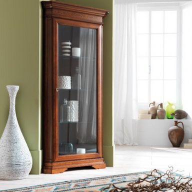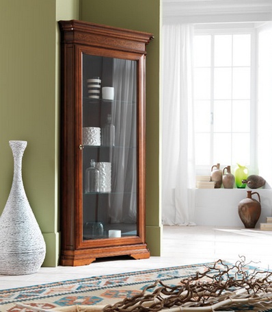 Showcase, from the Italian manufacturer at the stilema stand. The model is made of solid wood. Finish - lacquer from a range of companies and carved decor. The door and shelves are made of durable transparent glass. Showcase perfectly complement the classic interior of the dining room.