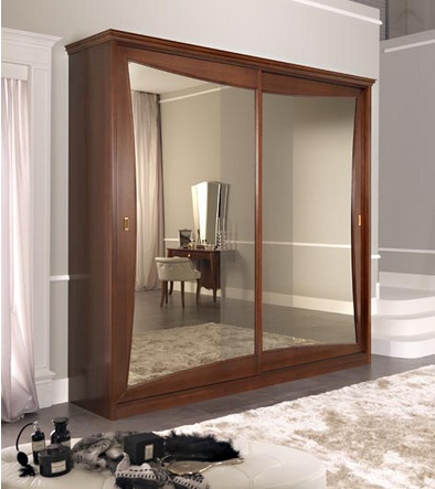 Wardrobe from the Italian manufacturer at the stilema stand. The frame is made from solid wood. The internal drawers are made of plywood. Sliding facades are lined with mirrors. Finish - wood veneer. The model is made in modern style.
