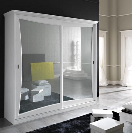 Wardrobe from the Italian manufacturer at the stilema stand. The frame is made from solid wood. The internal drawers are made of plywood. Sliding facades are lined with mirrors. Finish - wood veneer. Zvereva gamma white. The model is made in modern style.