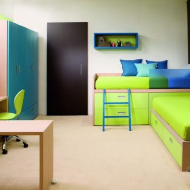 Headsets for children from the Italian manufacturer dear Kids. Set includes bed with built-in drawers for storage, shelves, a wardrobe and a Desk. The furniture is made of solid wood, the surface is treated with varnish from the range of the campaign. Set in a contemporary style. Colours in stock.