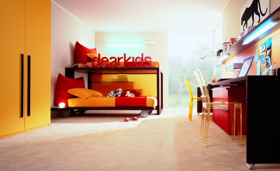 Headsets for children from the Italian manufacturer dear Kids. Set includes twin beds, shelves, Desk, chair and wardrobe. The furniture is made of solid wood, the surface is treated with varnish from the range of the campaign. The trundle bed. Set in a contemporary style. Colours in stock.
