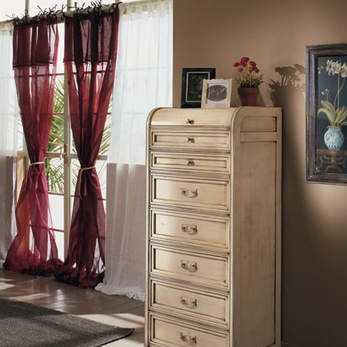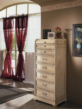 A chest of drawers from the Italian manufacturer at the stilema stand. The frame is made from solid wood. The different drawers antique finish. Colors - ivory. The chest consists of 5 large and 3 small drawers. The model is made in classic style.