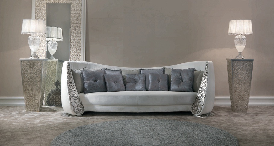 Sofa made of solid wood with carved metal decor Saraya , Elledue