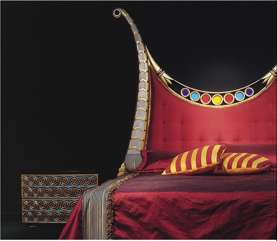 The bed is from Italian manufacturer Elledue. The frame is made from solid wood, the surface is treated with varnish from the range of the campaign. Model double bed with high headboard and very striking design. The product surely will adorn your bedroom. Colours in stock.