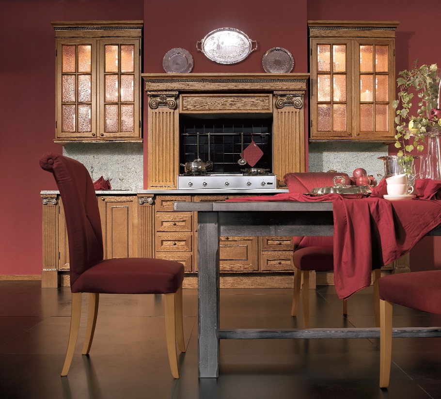 Set for the kitchen from Italian manufacturer Elledue. Set in a classic style. The furniture is made of solid wood, the surface is treated with varnish from the range of the campaign. Fold - frosted glass. Kitchen with built-in illumination. The color of natural wood products.