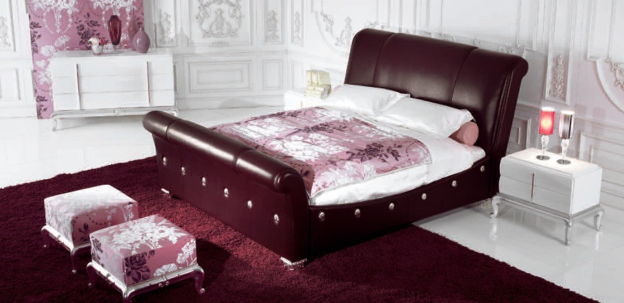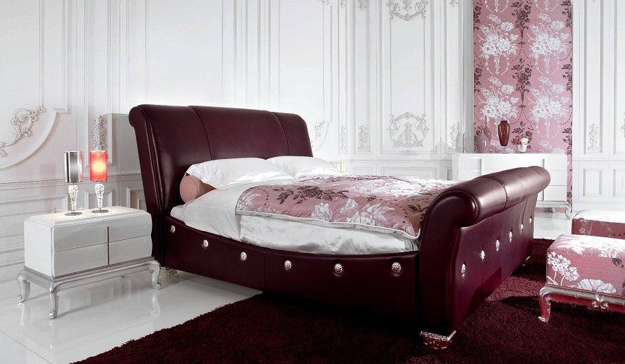 The bed is from Italian manufacturer Elledue. The legs are made of solid wood, upholstery - leather. The model is a double high and a cushioned headboard. A chic choice for the interior in art Deco style. Product color Burgundy.