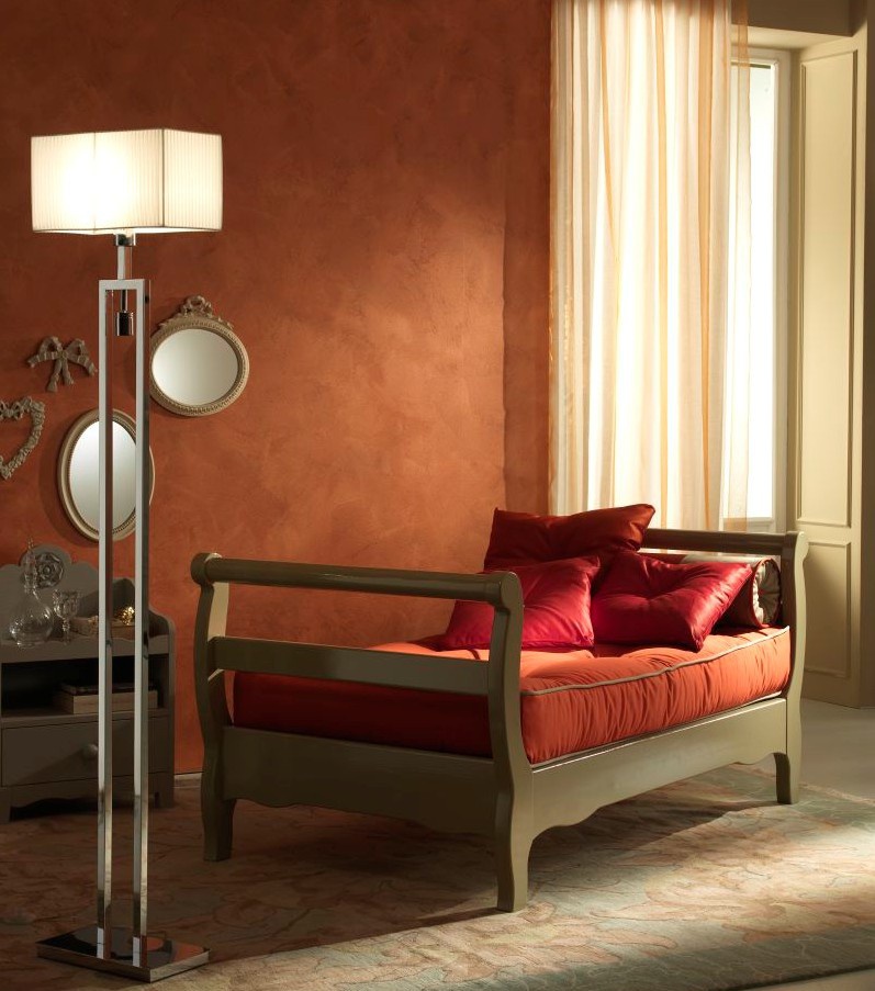 The couch from the Italian manufacturer De Baggis. Frame - solid wood, upholstery - textiles. This provided the cushion. The model is made in modern style. Colours in stock.