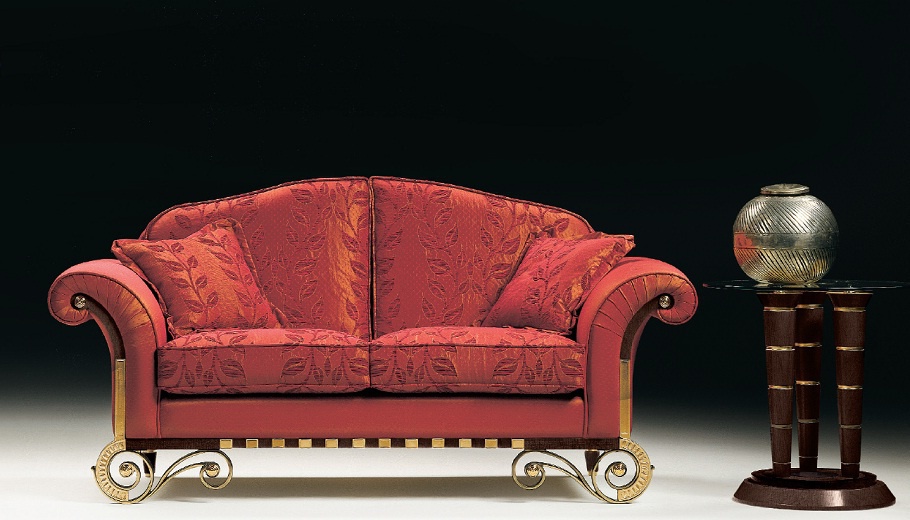 Rokko sofa from Italian manufacturer Elledue. The frame is made from solid wood, filler - foam, upholstery - textiles from the company portfolio. Colours in stock. Element of decor are wrought iron details. Model in the classic style. A chic choice for the living room in both classic and contemporary style that will add an eclectic interior.