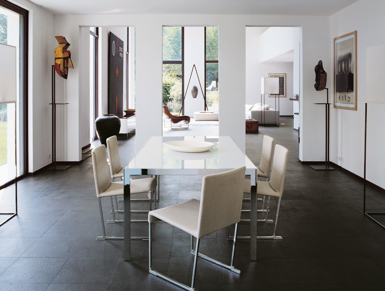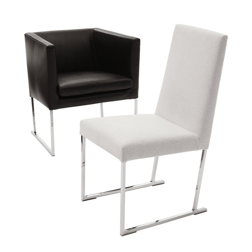 The Solo chair from the Italian manufacturer B & B Italia. The model without armrests. The frame and legs in stainless steel. Seat and backrest can be upholstered with leather or textile. Colors in the catalog of the company.