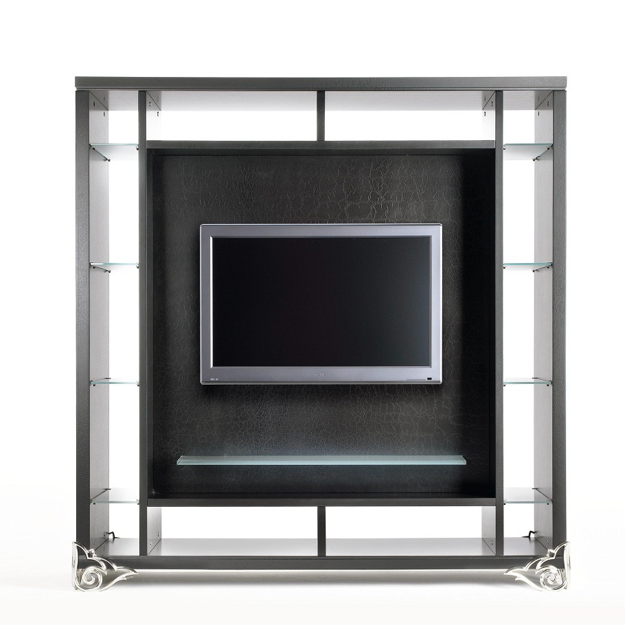 TV stand from Italian manufacturer Elledue. The frame is made of wood. Surface finishing made of natural leather. Shelf - frosted glass. The leg - from chromed metal. The perfect choice for a living room in modern style.