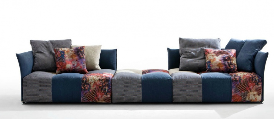 The Pixel sofa from Italian manufacturer Saba Italia. The frame is made of wood. Upholstery - textiles from the company portfolio. The design of complementary decorative pillows. Back smoothly into the armrests. In the center of the back model no. The model is made in modern style.