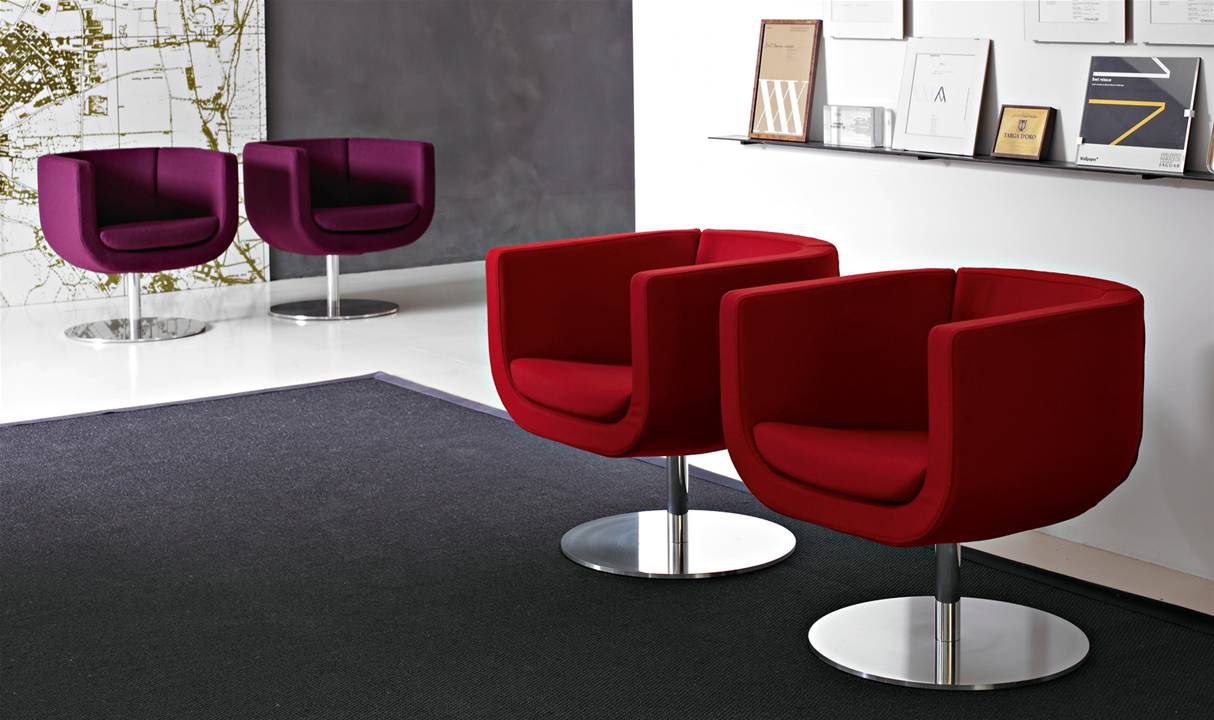 The Tulip chair from the Italian manufacturer B & B Italia. Model with a rounded shape. The frame is completely hidden. The base is made of chromed metal. Stationary upholstery leather or textile. Color - red, blue or black. Seat cushion filled with soft foam. Made chair in a contemporary style.