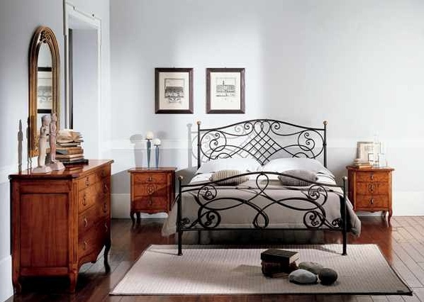 Headsets for bedrooms from Italian manufacturer of Bamax. Includes double bed, two bedside tables, chest of drawers and wall mirror. Material - solid wood. The veneer finish is offered. Pen boxes made of metal. Headboard and footboard beds wrought. Set made in a classic style.