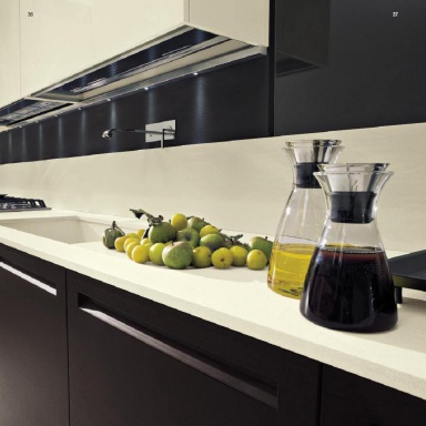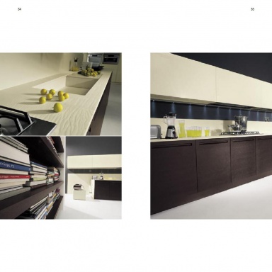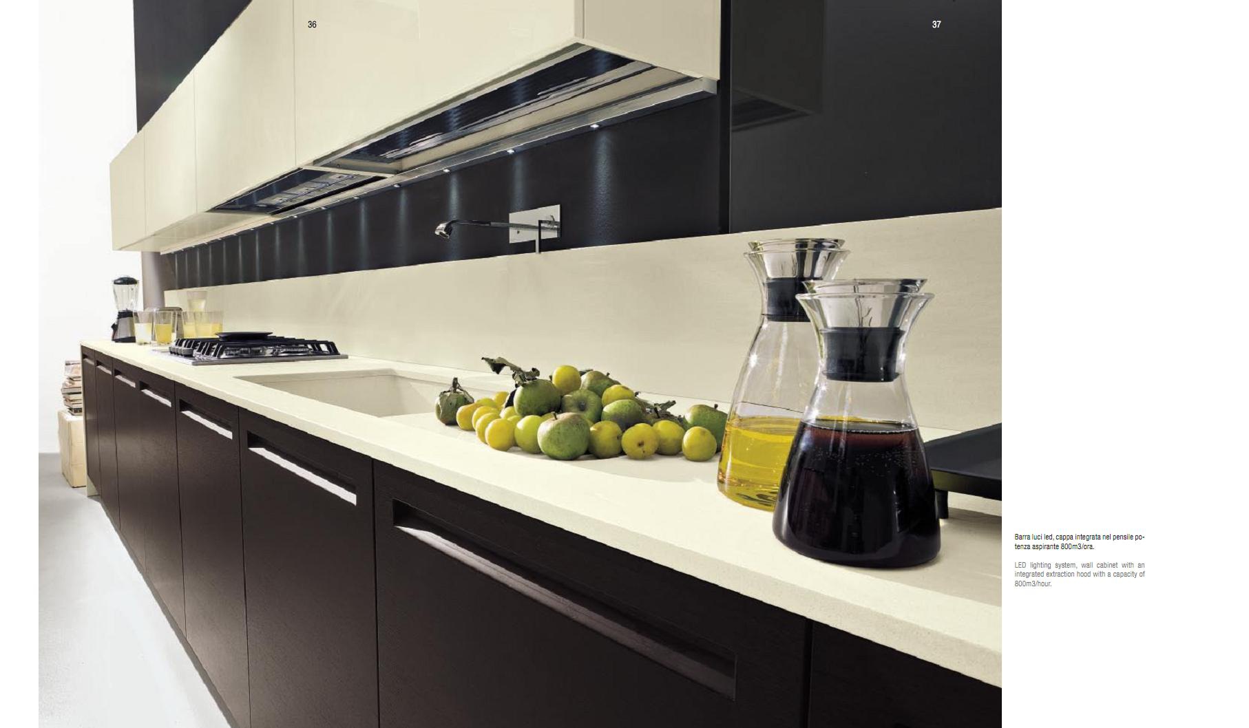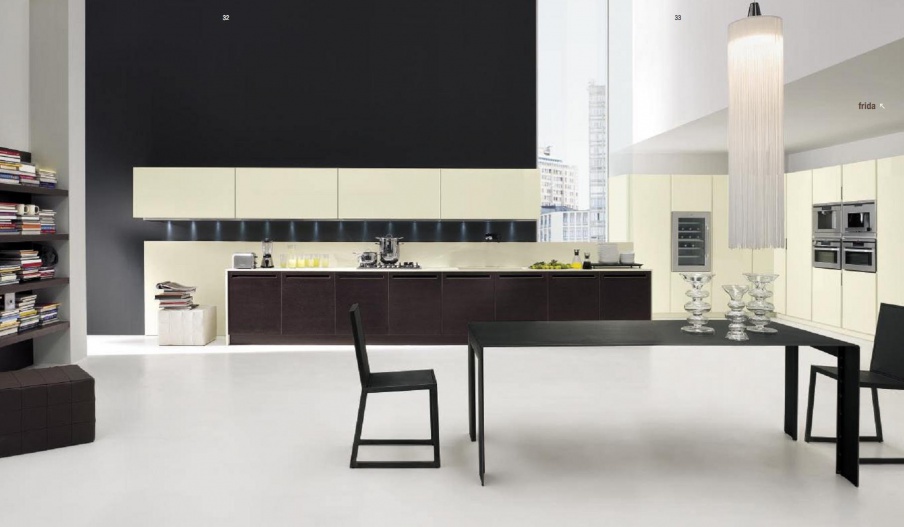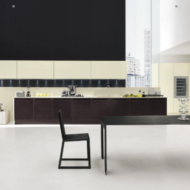 Kitchen (kitchen set) Frida from the Italian manufacturer Mittel. The model is made in modern style. The frame durable, aluminum. Lacquered doors are made of oak veneer, handles intergrown. The kitchen can be made of oak or walnut, it is painted wenge.