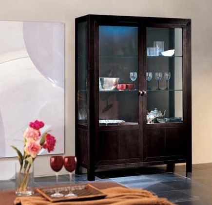 Double showcase Jamila from the Italian manufacturer of Bamax. The frame and legs are made of solid wood. The surface may be treated with a varnish or veneer. Shutters and shelves made of transparent glass. The lower part of the blind. Elegant and practical model will decorate any interior.