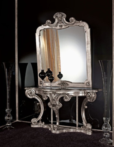 Console from Italian manufacturer Minotti Luigi & Benigno. The frame is decorated with carvings, with silvering. The marble countertop. The model is made in classic style. Can be supplemented with a mirror.