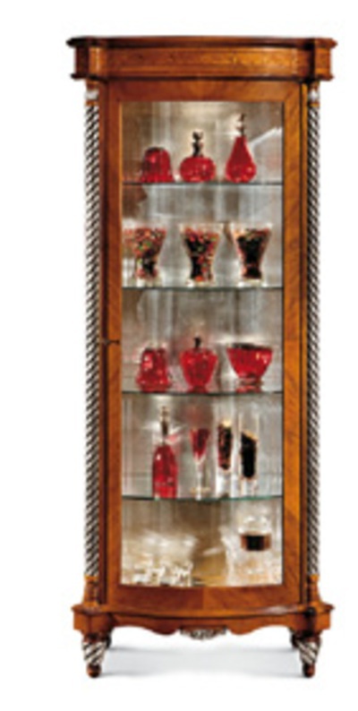 Showcase from Italian manufacturer Minotti Luigi & Benigno. The frame is made of solid wood, decorated with carving, with silvering. Model 1-door, shelves made of glass, internal lighting. Panel painted. The model is made in classic style.