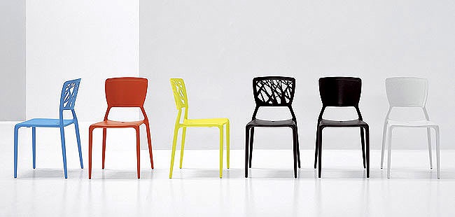 Viento chair from the Italian manufacturer Bonaldo. Model with shaped backrest. The frame and legs made of polypropylene. Color - white, red, yellow, blue or black. The model is made in modern style. Can be used both indoors and outdoors.