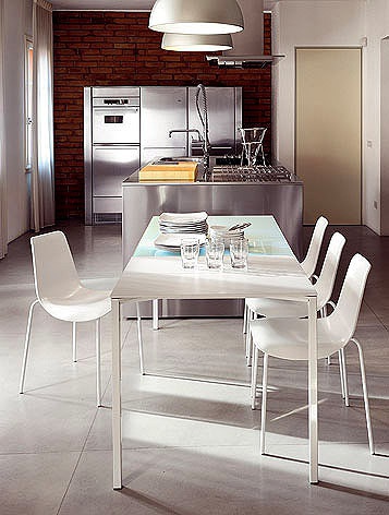 Fli dining table from Italian manufacturer Bonaldo. The model is on a metal frame. The varnish finish offered from the company portfolio. Countertop square or rectangular shapes of glass. The table is manufactured in contemporary style.