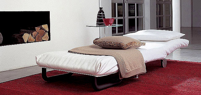 Chair with armrests Arturo classic from Italian manufacturer Bonaldo. Model with straight front legs, rear castors equipped. Material - metal. The frame in fabric. Seat and backrest filled with foam. The model can be easily decomposed and becomes a comfortable sleeping space.