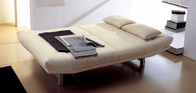 Double Ciak sofa from Italian manufacturer Bonaldo. The model is made in modern style. Massive legs made from chromed metal. The case is completely covered with textile. Option color and texture for the choice taking into account the wishes of the customer. In addition offers decorative pillows.