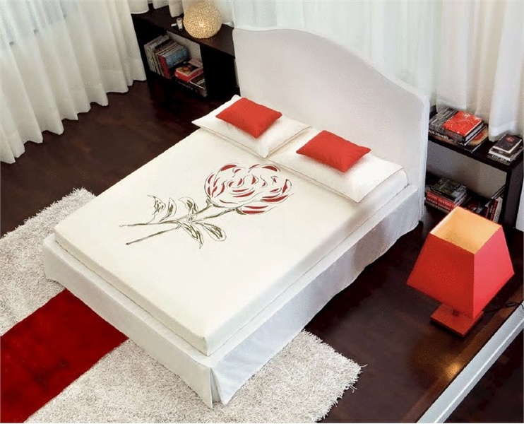 Double bed Lip from the Italian manufacturer Bonaldo. Model with a high scalloped headboard. Frame made of solid wood. Upholstery removable fabric. Offers a wide range of color options. The bed is manufactured in contemporary style. Is durable and comfort.