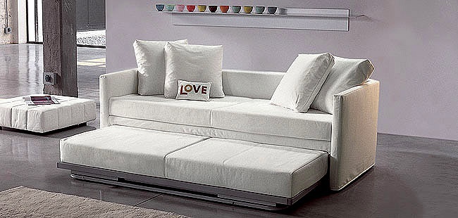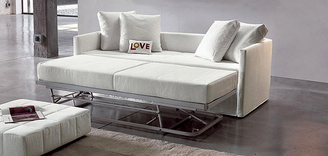 Double Zen sofa from Italian manufacturer Bonaldo. The backrest and armrests are low. The frame is completely covered with textile. Legs and metal fittings. The model easily converts into a comfortable bed. Made sofa in contemporary style.