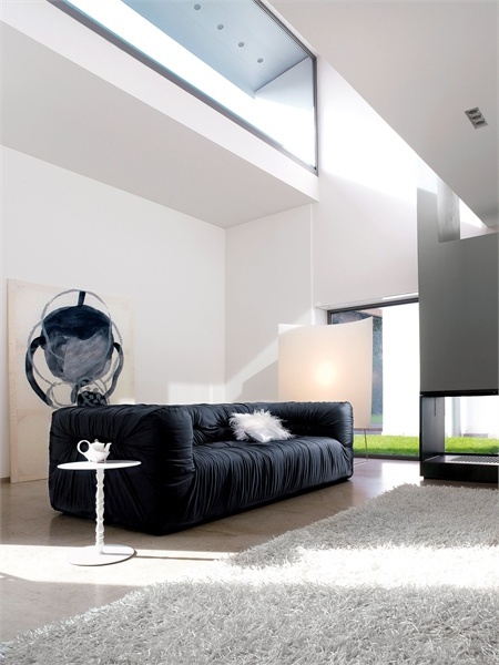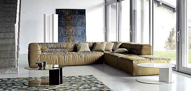 Modular sofa Nuvola from Italian manufacturer Bonaldo. The model with a low back and wide, square armrests. The frame is completely covered with textile. Colors to choose from a collection company. The model is decorated with decorative pleats. In addition offered are decorative pillows of different sizes.