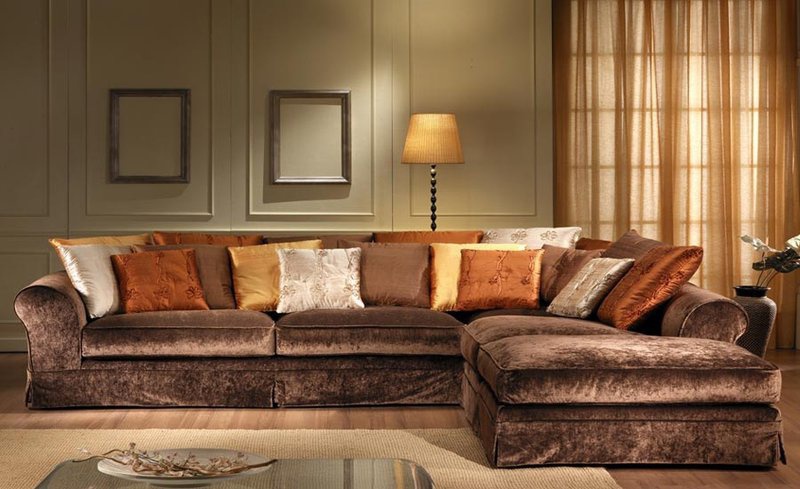 Babilonia modular sofa from Italian manufacturer Goldconfort. The frame is made from solid wood, upholstery - textiles from the company portfolio. The seats are removable. Pretty model for a drawing room in classical style. The design of complementary decorative pillows. Colours in stock.