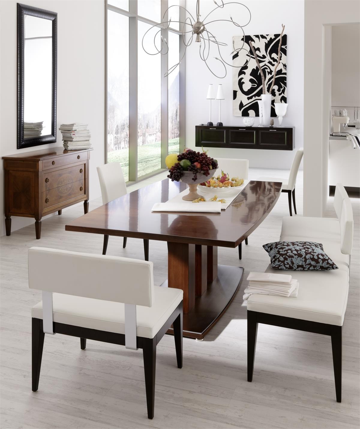 Eleganza dining table from the Italian manufacturer Selva. The frame is made from solid wood. Base in chromed metal. Three columns of solid beech. Worktop - cherry veneer. The surface is lacquered. Is delivered unassembled. The model is made in art Deco style.