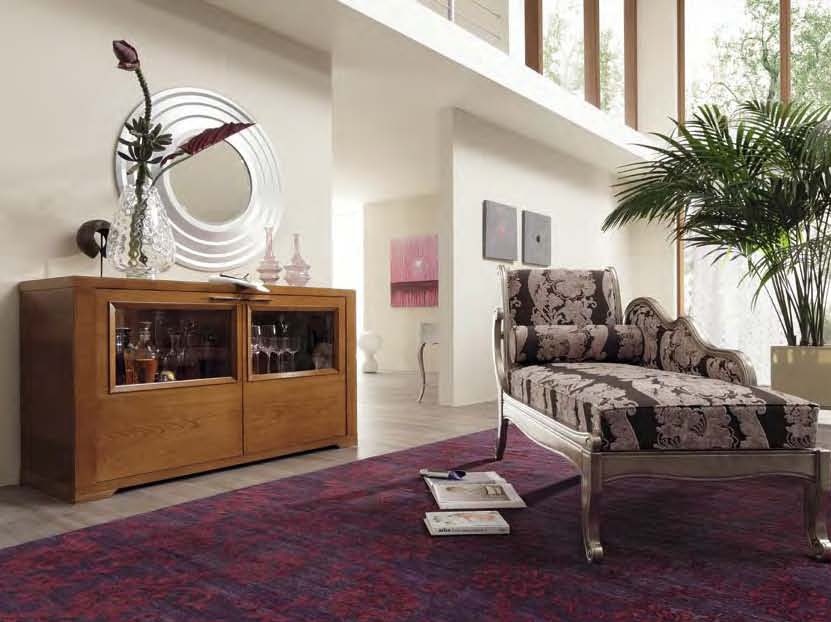 The Eleganza chest of drawers from Italian manufacturer Selva. Model 2-door. Doors made of cherry veneer, half of the sash glass. Frame and shelf made of solid beech wood. Interior lights. A chest of drawers in a modern style.