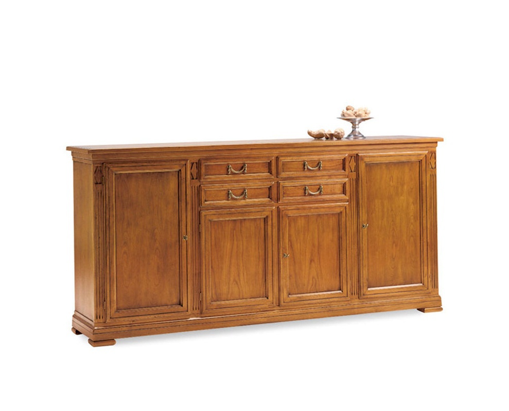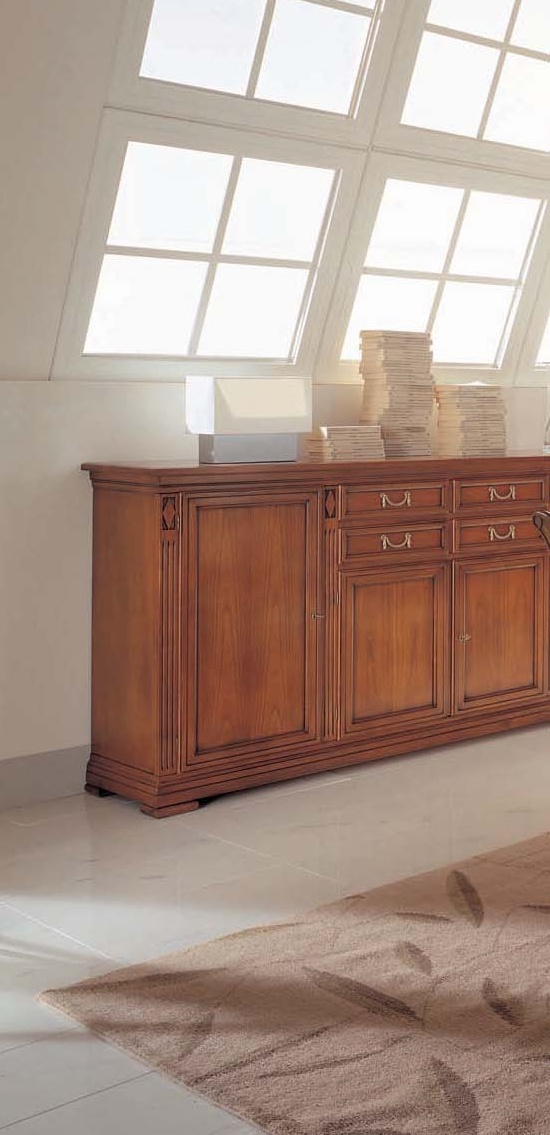 The Villa Borghese chest of drawers in classical style from the Italian manufacturer Selva. Model 4-door with four drawers. Frame and shelf are made of solid Linden and veneer finish cherry. There are two types of accessories to choose from.