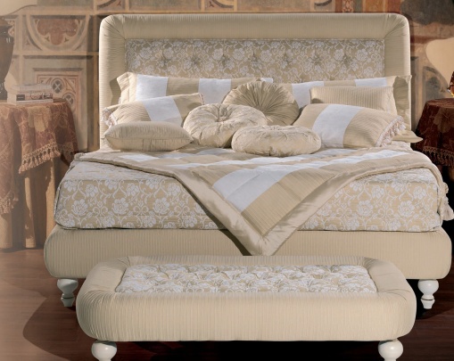 Double bed Atia from the Italian manufacturer TreCi Salotti. The model is made entirely of solid wood. The legs are also made of wood. Upholstery - textiles with stitch Capito. Colors - beige. The product is made in a classic style.