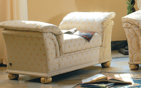 Bench Boris, from the Italian manufacturer TreCi Salotti. The frame is made of wood. Upholstery - textiles from the company portfolio. The armrests are wrapped. Round legs painted in Golden color. The model is made in classic style.