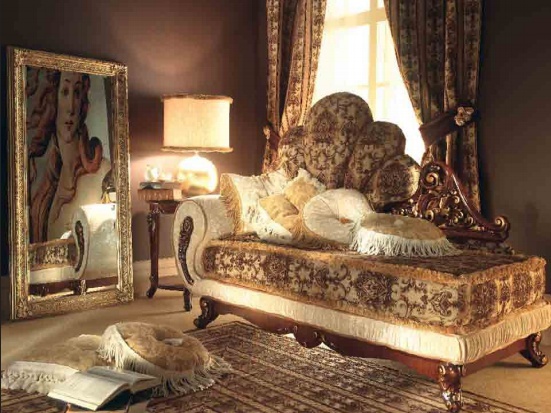 The couch from the Italian manufacturer TreCi Salotti. The frame is made of wood. Upholstery - textiles from assortment company. The model is decorated with carved decoration. The couch is made with one armrest. The model will perfectly complement the classic interior of the living room.