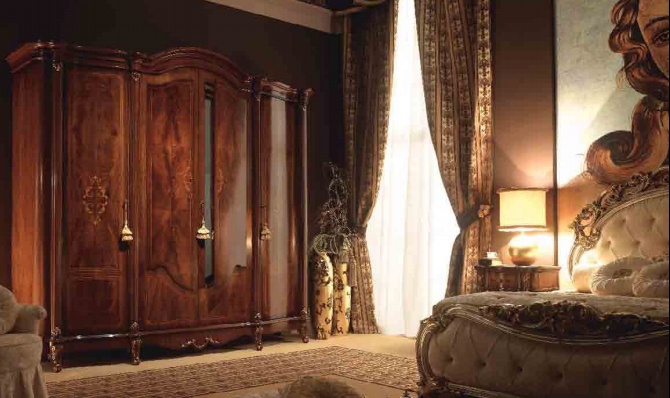 Wardrobe from the Italian manufacturer TreCi Salotti. The frame is made from solid wood.Metal handles complemented with textile tassels. Finish - wood veneer lacquer. The model is made in classic style.