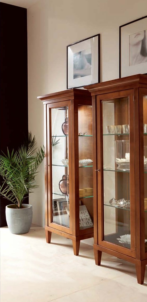 Showcase of Siena from the Italian manufacturer Selva. The frame showcases are made of solid alder, finished with rich cherry. Model single door, with 3 removable shelves, internal illumination. Showcase made in a modern style.