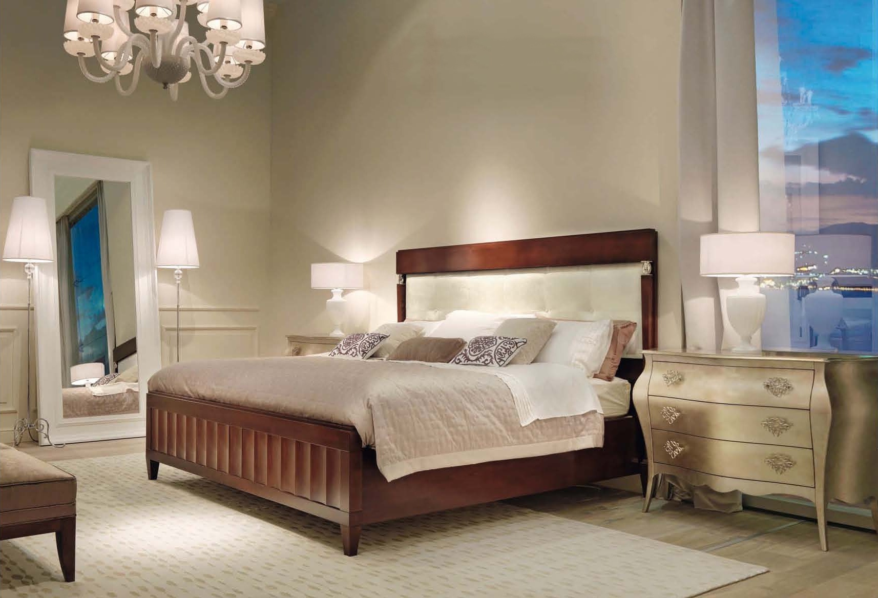 Double bed Heritage J. S. produced by the Italian factory Selva. Bed frame made of solid alder, the finish is cherry veneer. High headboard upholstered in brown leather. Bed on low legs of solid beech. The model is made in modern style.