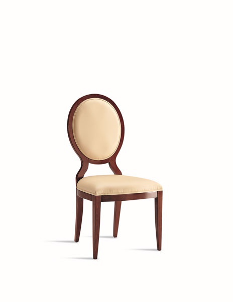 The Hugo chair from the Italian manufacturer Selva. The frame is made of solid beech. The seat and back are soft. Filler - polyurethane. The upholstery is leather or textile. The back oval. The model is made in modern style.