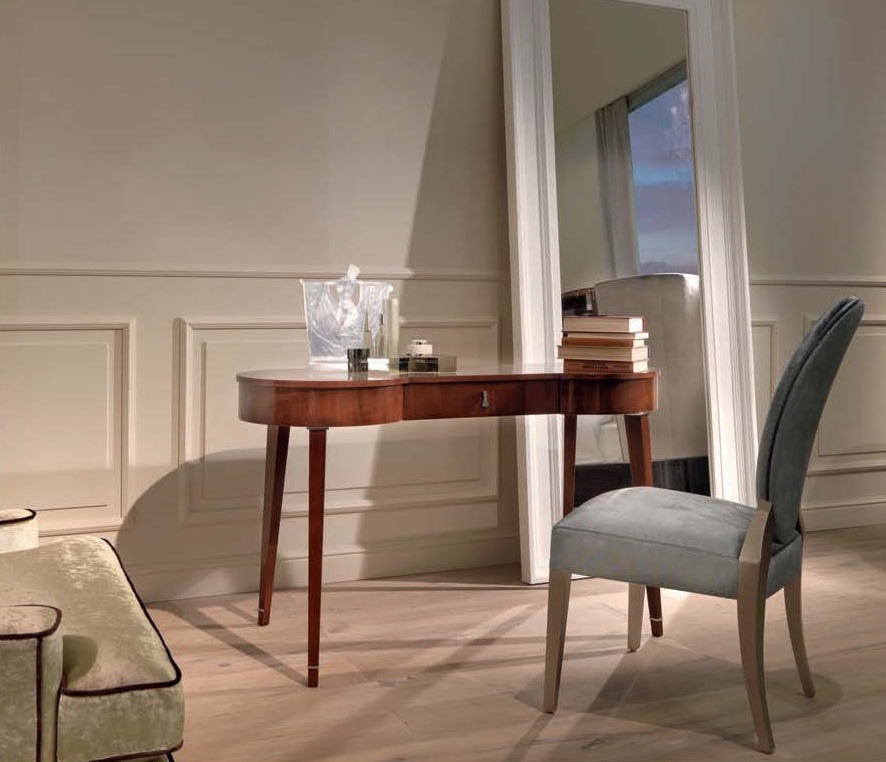 The Amadeus chair from the Italian manufacturer Selva. The frame is made of solid beech. The seat and back are soft. Filler - polyurethane. Upholstery in fabric or leather. The back oval. The model is made in art Deco style.