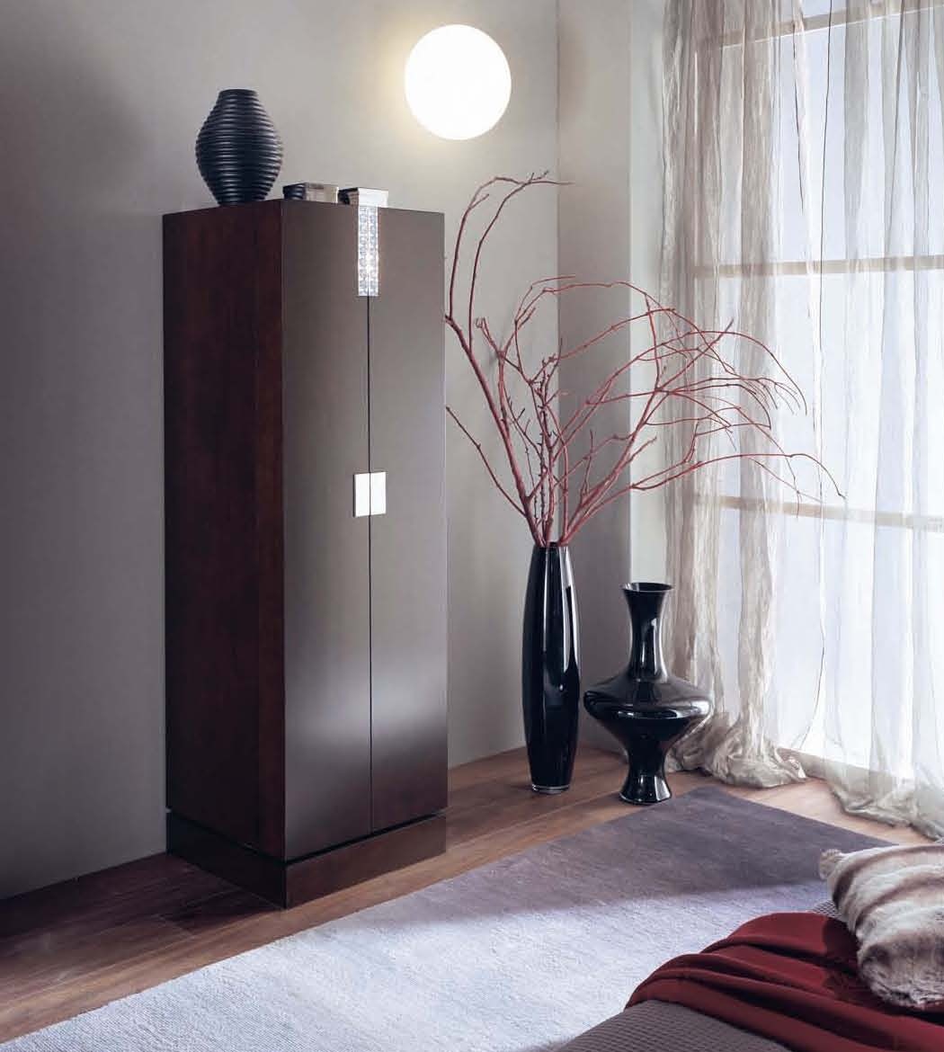 Closet Solitaire from the Italian manufacturer Selva. The frame is made from solid beech and finished in cherry veneer. The two-door model, door inserts decorated with Swarovski crystals. Inside 2 large drawers and one small, open niche and the Cup holders in the doors by 5 small shelves. Bar Cabinet made in a modern style.