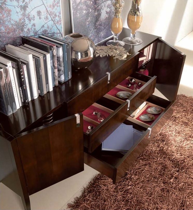Chest Solitaire produced by the Italian factory Selva. The frame is made of solid beech. Model two-door, with three drawers, decorated with rhinestones inserts. Chest high on decorative legs. The model is in modern style.
