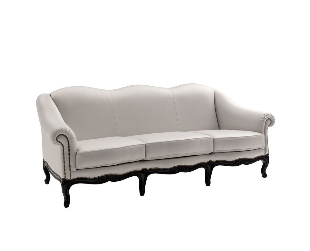 Three-seater sofa from Italian manufacturer Selva. The frame is made of solid beech. Curly backrest, seat and armrests upholstered with a filling of polyurethane foam. Upholstery textile from the company portfolio. Eight legs are decorated with carvings. The model is made in art Deco style.