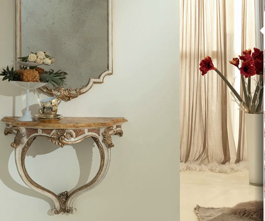 Semi-circular console from the Italian producer Silvano Grifoni. The base is made of natural wood. Model color - natural wood color. The console is decorated with carved decoration. The model will perfectly complement a classical interior.